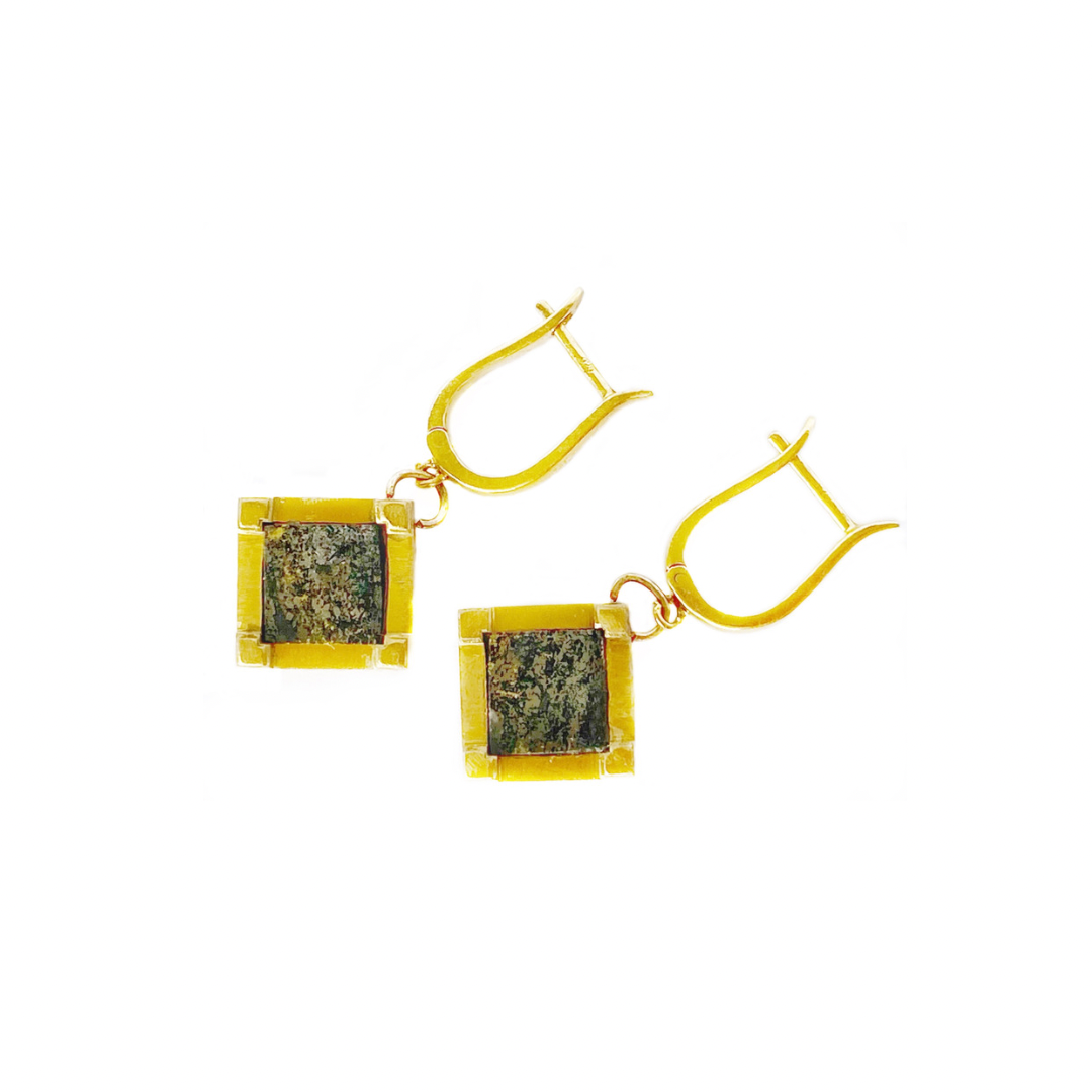 Gold 18K Vermeil Empire Square Earrings w Gemstone