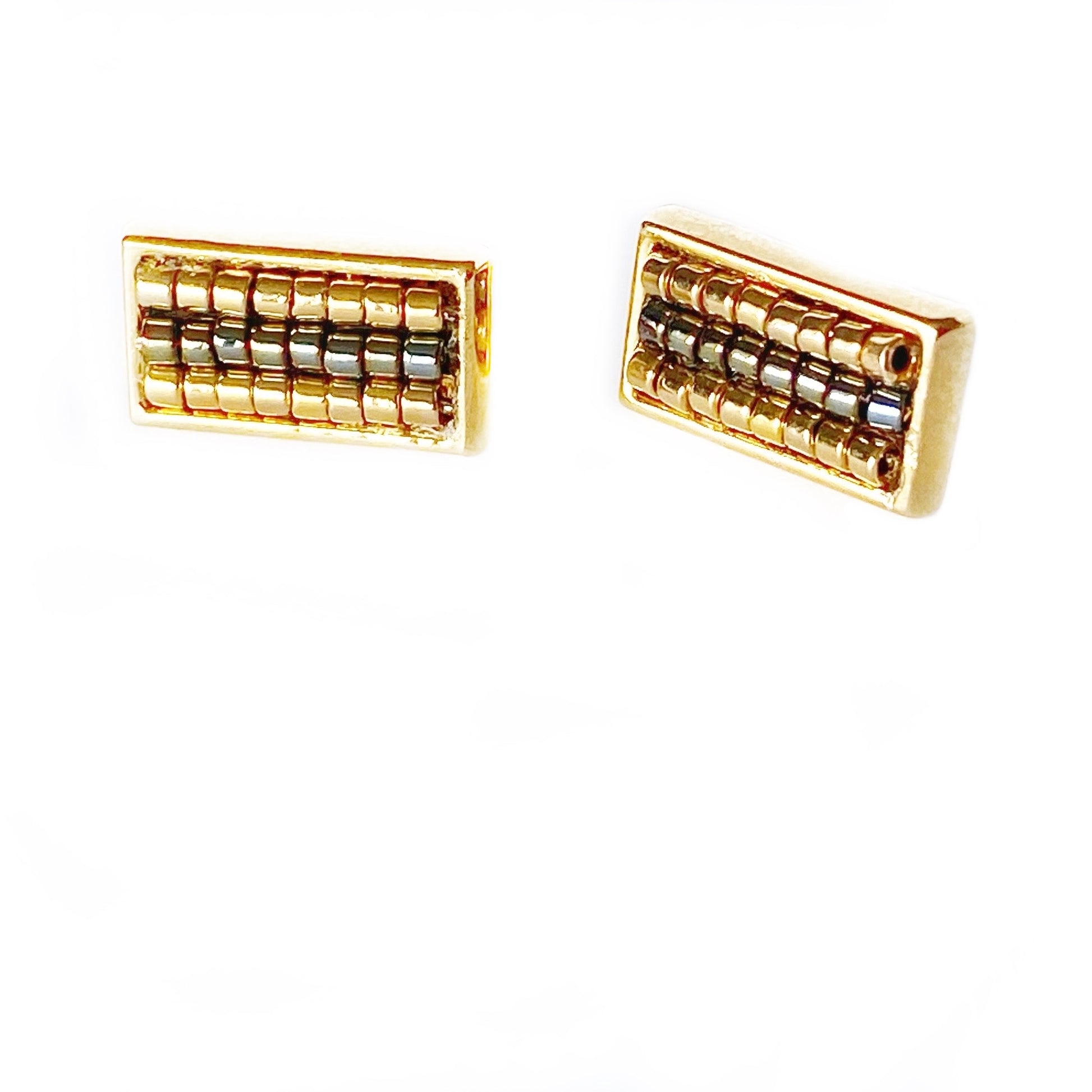 Gold & Dark Metallic Hand-Beaded Rectangular Stud Earrings GP