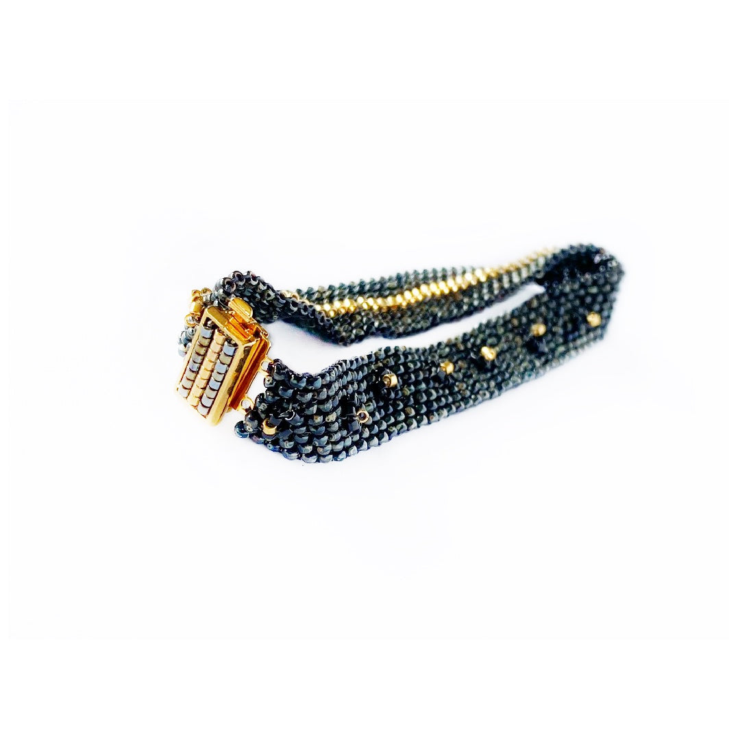 - Dot Line Bracelet, 8" with 14 Kt Gold-Plated 1.5" Clasp
