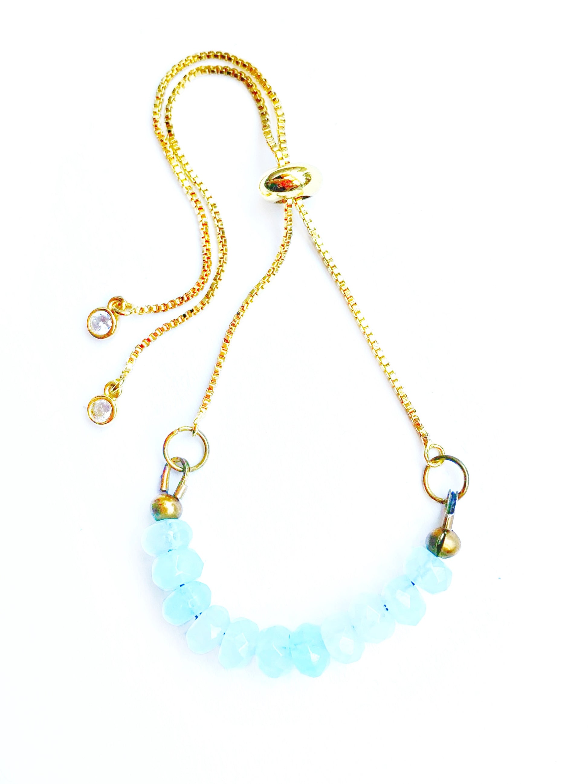 Gold-Plated Boho Bracelet with Aquamarine Beads