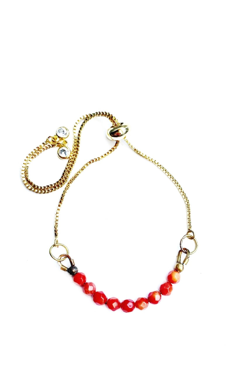 Take your boho look to the next level with our Gold-Plated Boho Bracelet with Red Coral Beads! This surprisingly lightweight and adjustable 14K gold-plated bracelet will have you dancing in style with Cubic Zirconia and dazzling Red Coral Beads. One thing's for sure - this bling is one of a kind!