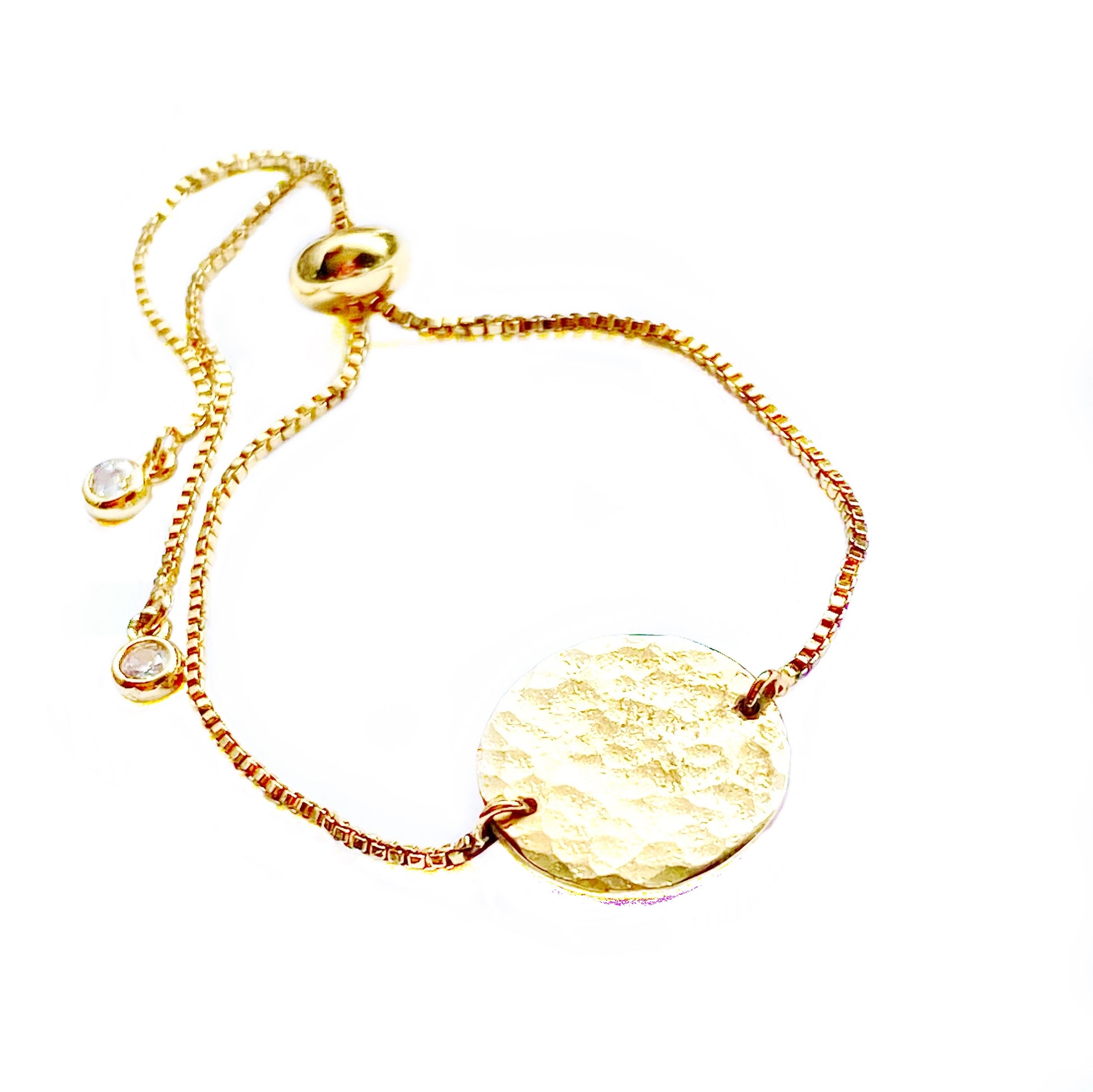 Gold-Plated Boho Bracelet with Hammered Round Disc