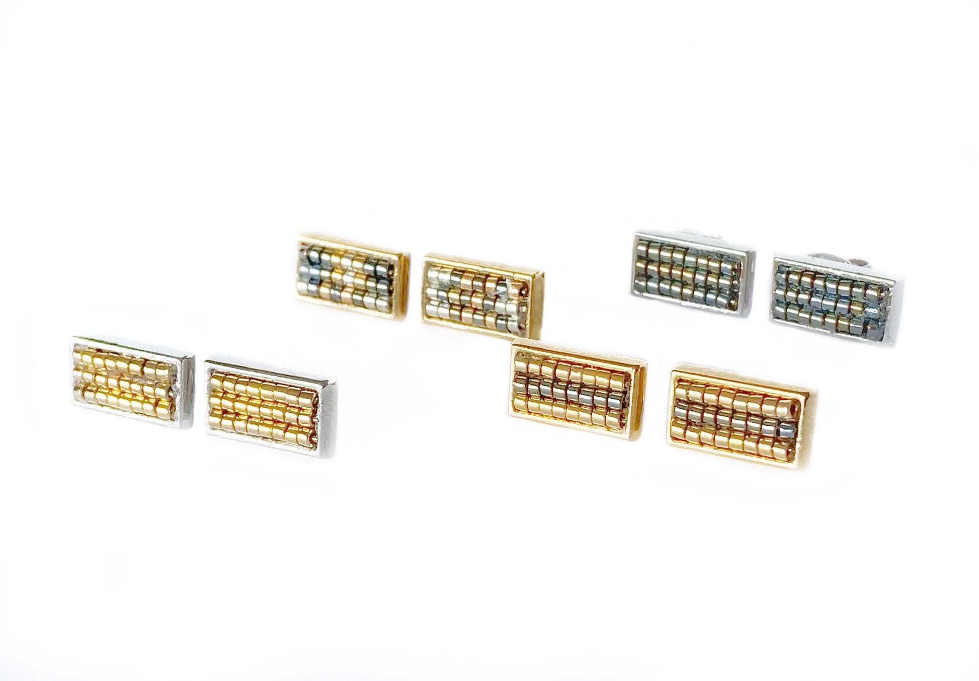 Gold-plated Hand Beaded Rectangular Stud Earrings