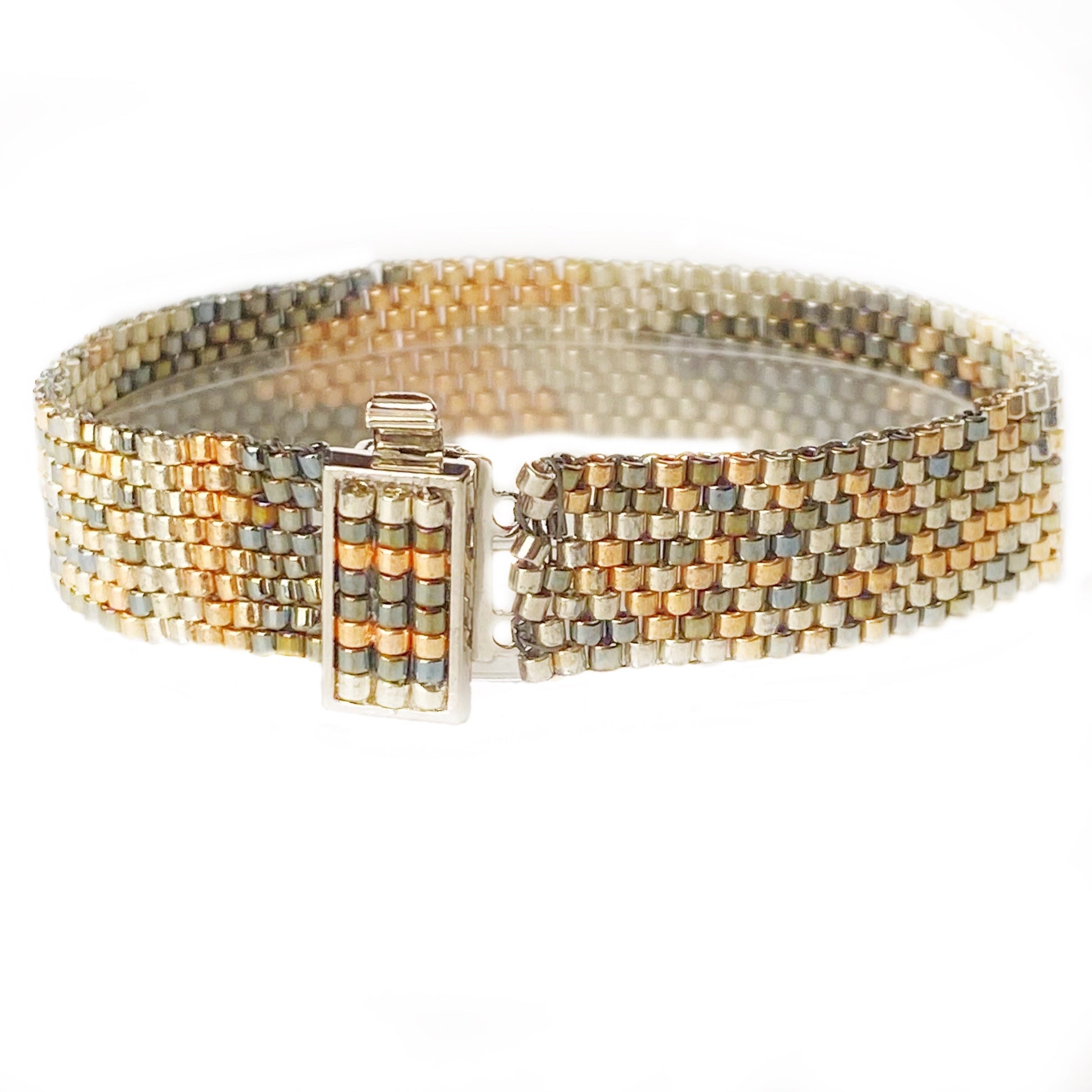 Gold Rose 22K, Gold Yellow 22K, Silver, Gunmetal Hand-woven Beads