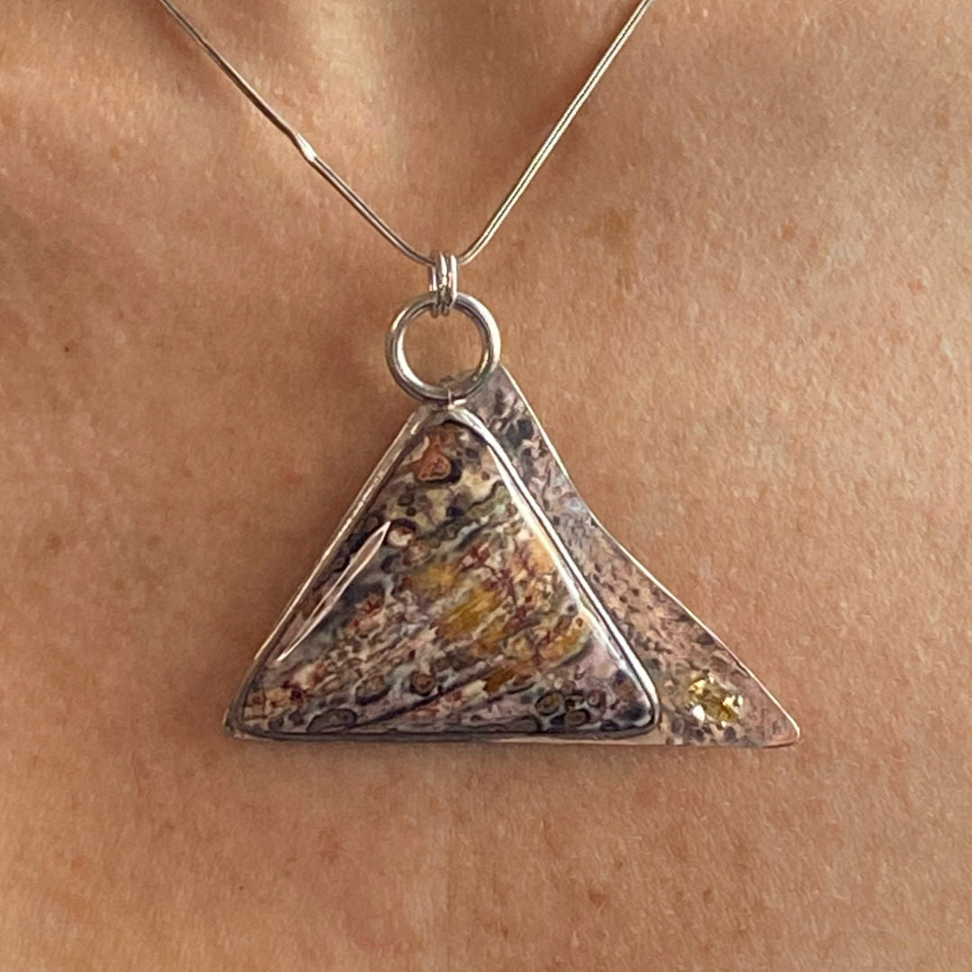 Ocean Jasper, Citrine, Sterling Silver Etched Snake Skin Necklace