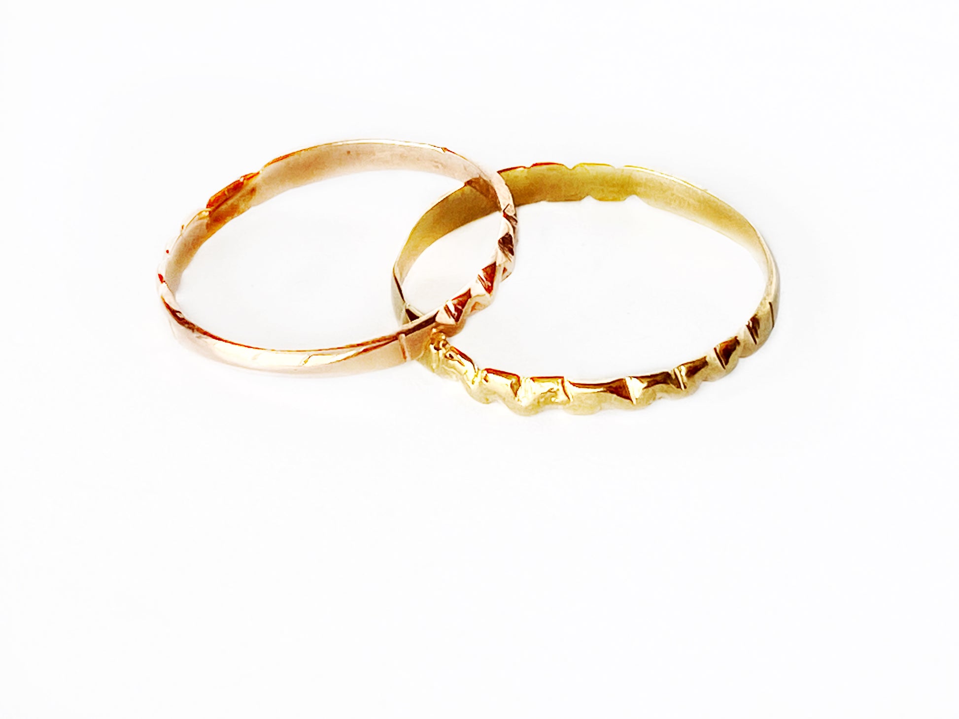 Adorn yourself with the elegant beauty of this luxurious vermeil "Athena" ring. Crafted from 14K rose gold and perfectly set to a 3mm width, this delicate dainty ring will gracefully accentuate your style. Featuring a size 11, other sizes are available made to order, allowing you to customize this gorgeous ring to your desired taste.Perfectly pairing with the Athena bangles, this elegant piece of jewellery will radiate a radiant splendor.