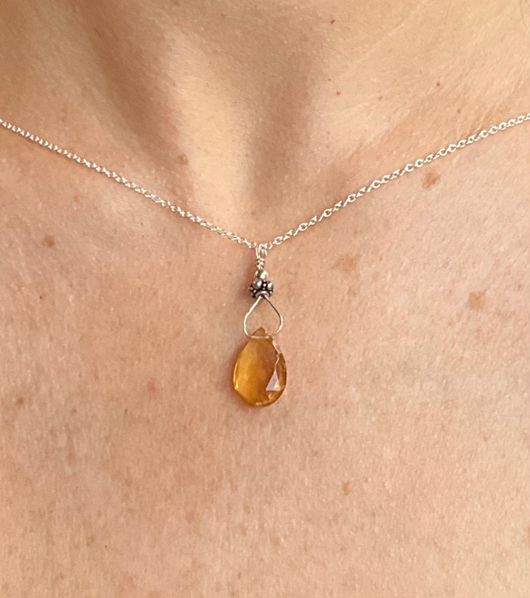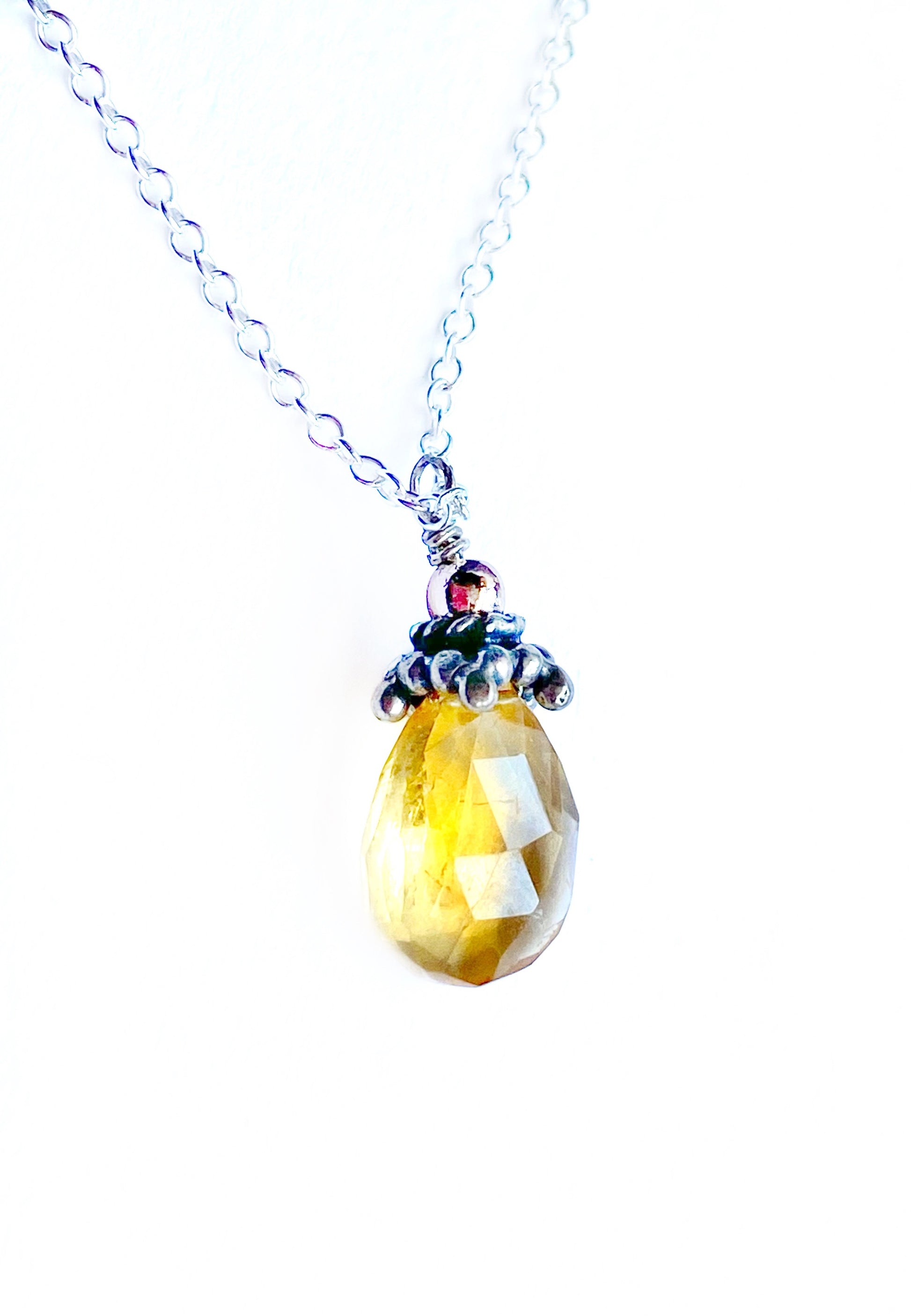 Faceted 10mm citrine briolette with sterling silver cap and ball