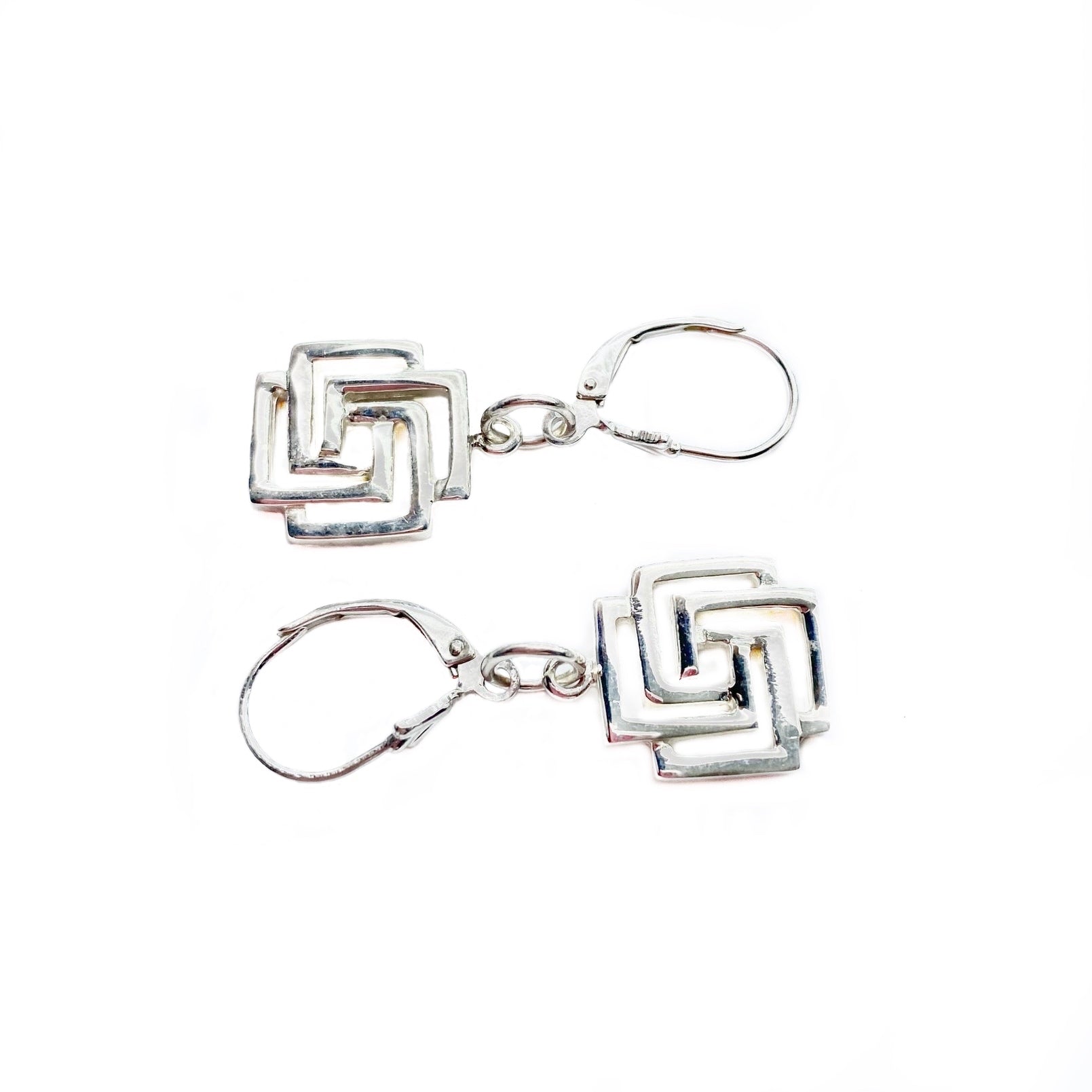 Sterling Silver 4-squares interlocked drop earrings. Also available gold-plated.