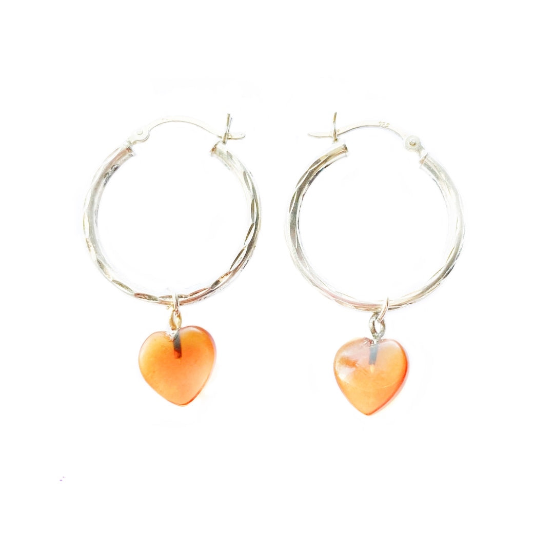 Sterling Silver Click Closure & Hand-carved Amber Heart Dangles