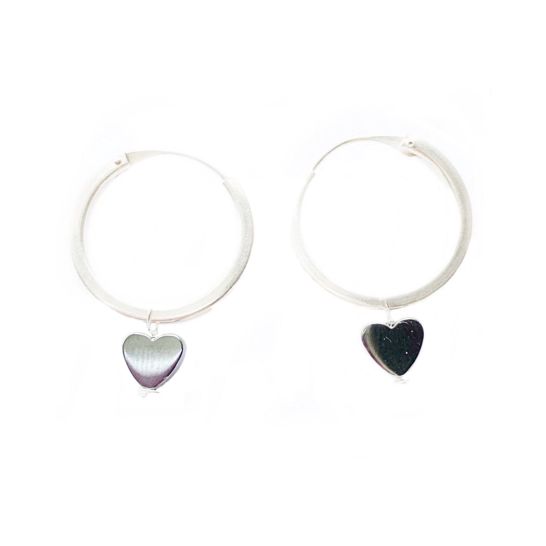 Sterling Silver Hoop & Hematite Hearts Earrings