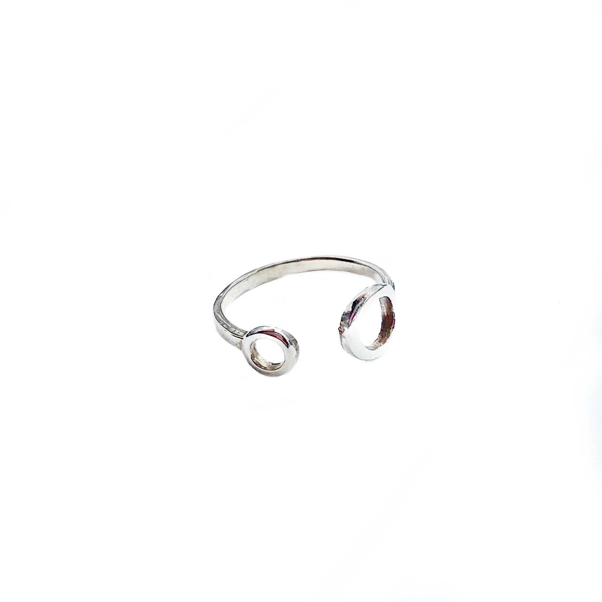 Sterling Silver 2mm open ring with 2-sized circles on each end