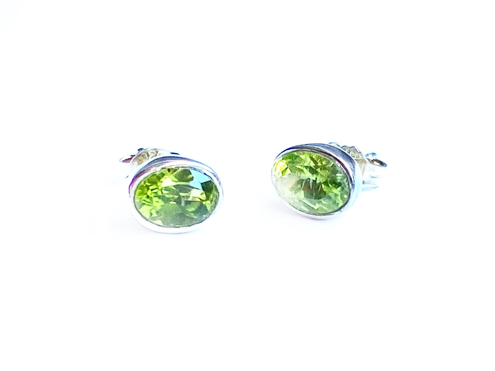 Sterling Silver & Peridot Oval Bezel Stud Earrings