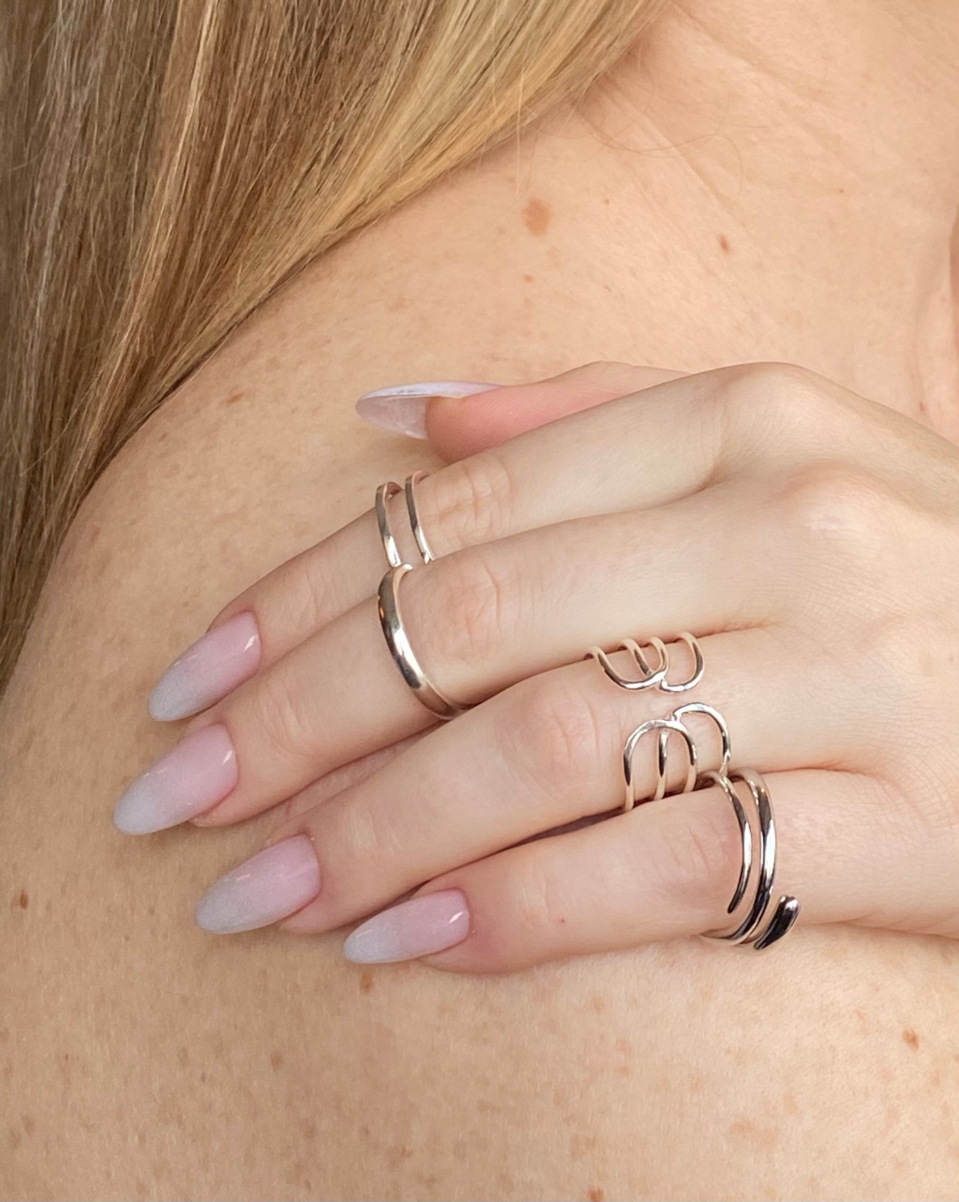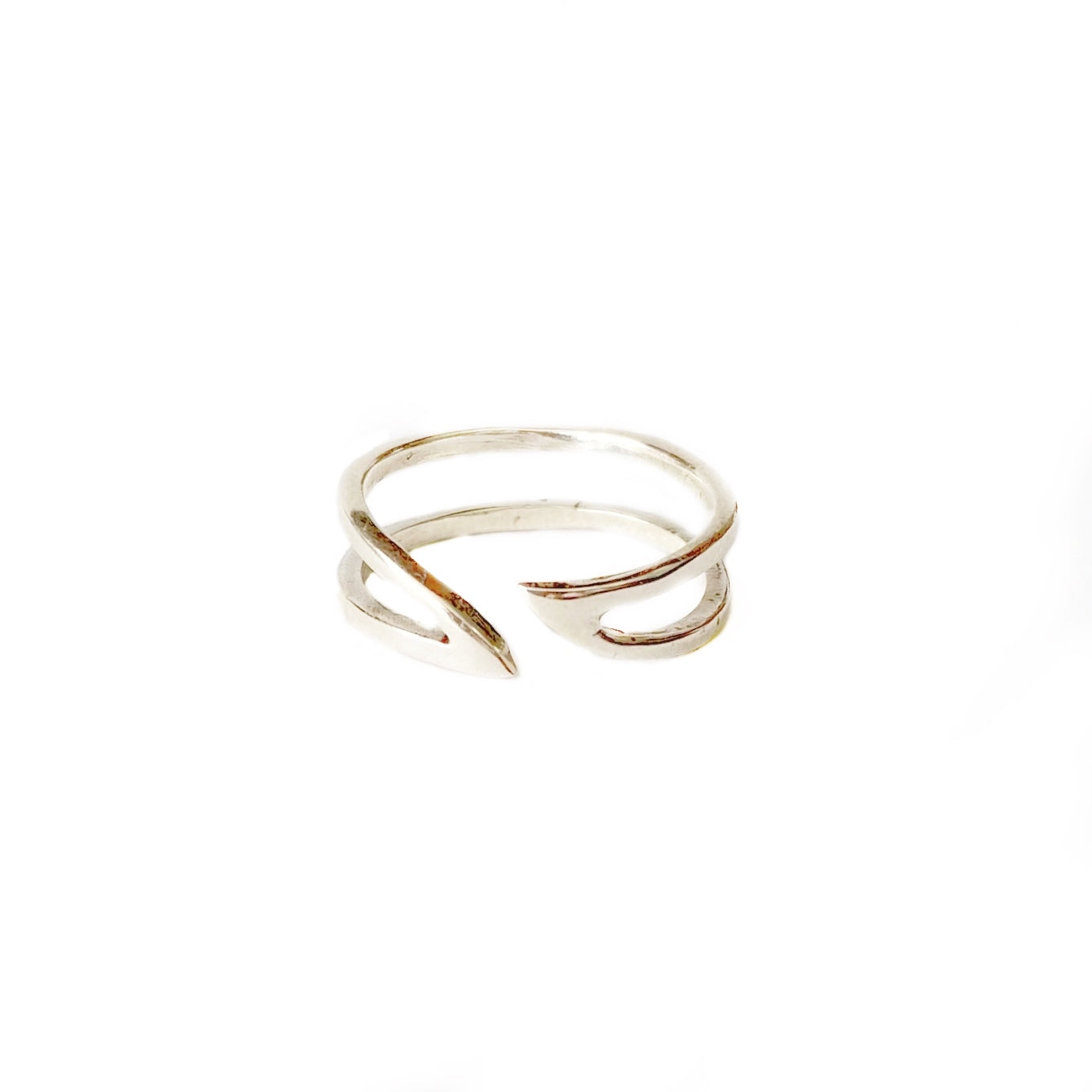 Beautifully crafted from double bands of sterling silver, this exquisite ring features a pointed open design to add a subtle yet sophisticated touch to any look. Size 7 is shown, though other sizes are available made to order. Slip on this sterling silver ring for an elegant finishing touch.
