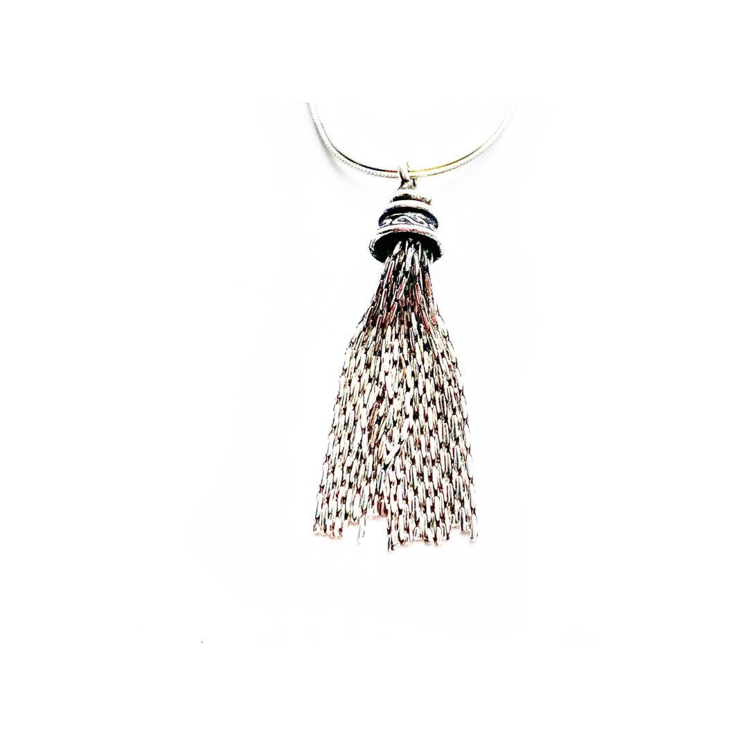Adorn yourself with sophistication with this Sterling silver tassel pendant necklace. Crafted from the finest Sterling silver, this delightful piece has been carefully oxidized to give the piece a dynamic and aged feel. The 18" snake chain accompanying the elegant pendant provides an alluring contrast in texture, resulting in a sophisticated and timeless design. A perfect piece for special occasions and everyday wear, this necklace will stand the test of time.