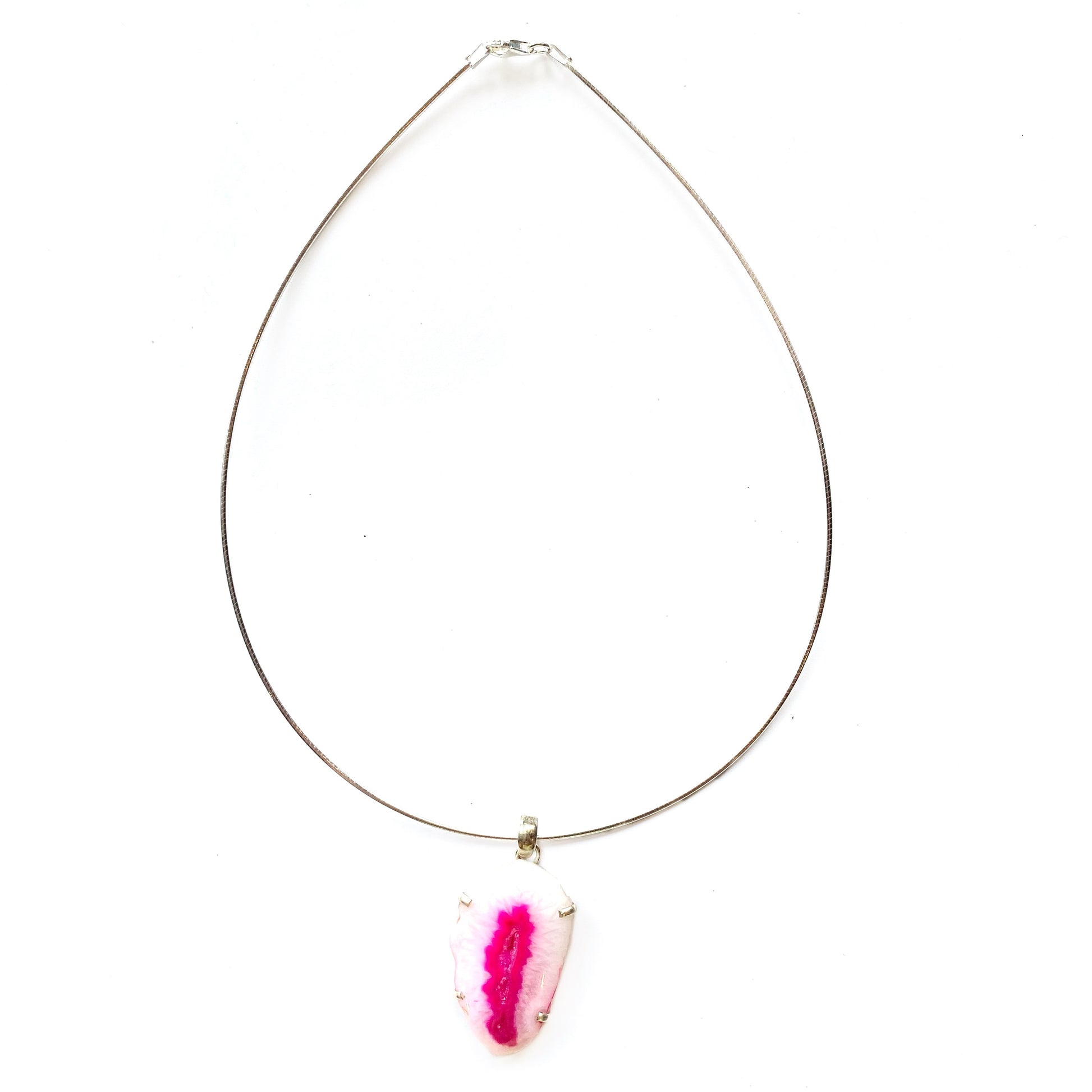 Add an air of sophistication to any look with this exclusive Sterling Silver Cable Choker Collar Necklace. Crafted from premium sterling silver, this effortlessly stylish choker measures 16" for a sophisticated and luxe addition to any ensemble. Impress your friends and embrace your inner fashionista with this tasteful and elegant necklace. It can be paired with a multitude of pendantsor charms and also shown with our Fuchsia Geode.