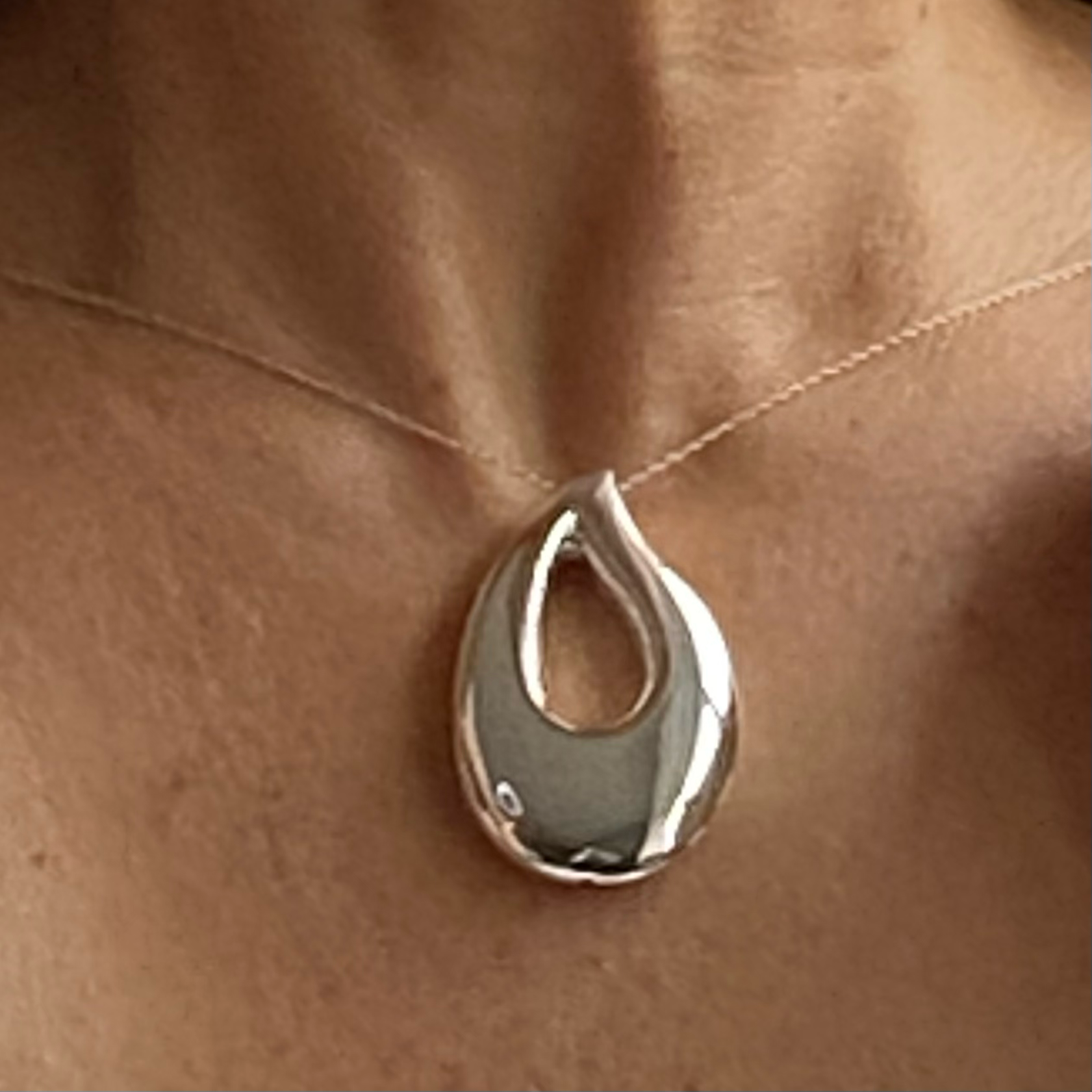 Sterling Silver Large Open Teardrop Pendant Necklace